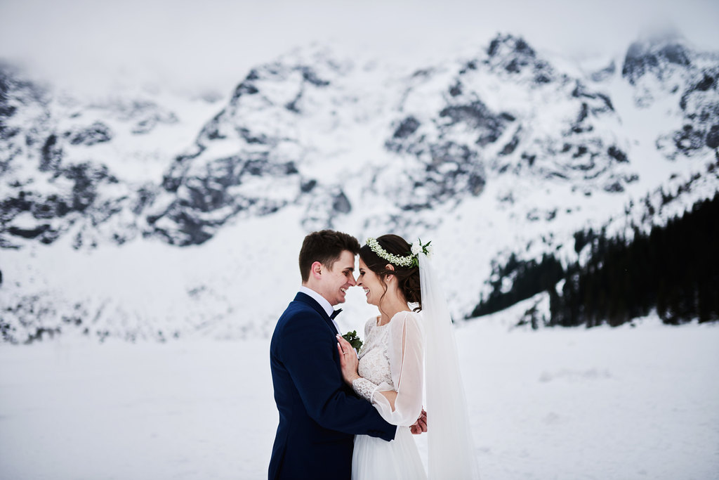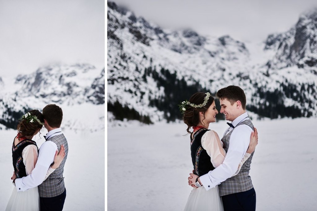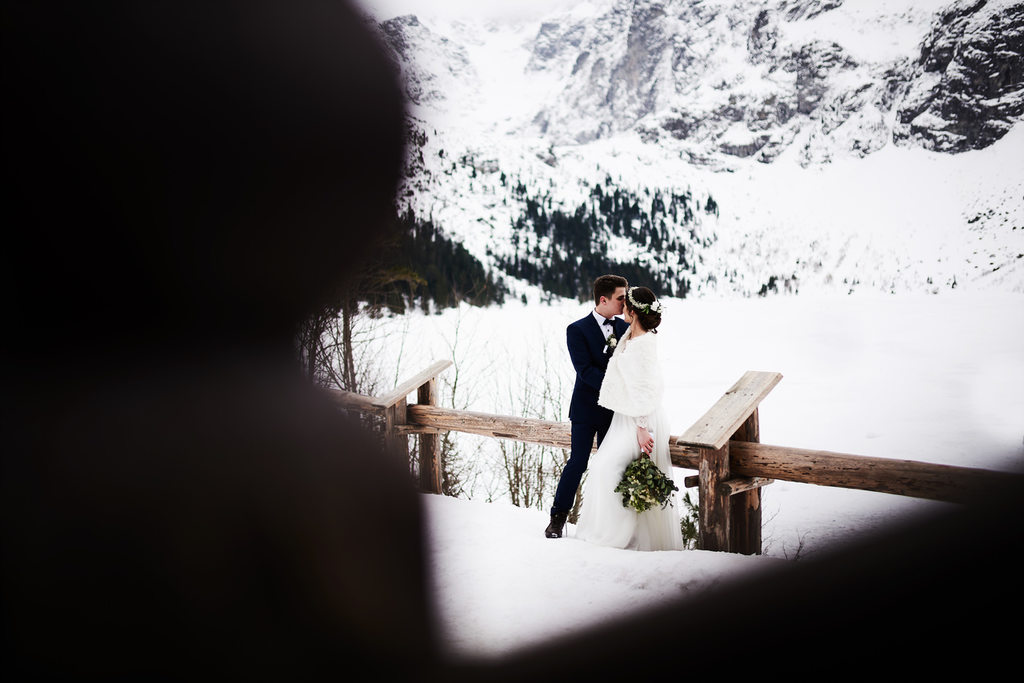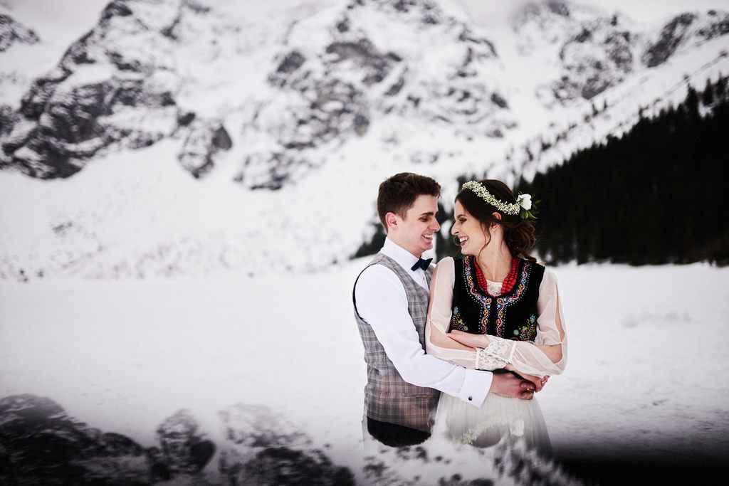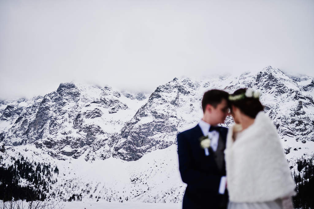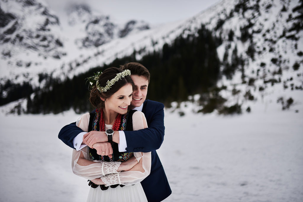 Monika i Tomek to moja kolejna para, która zdecydowała się na sesję w górach. Pierwsze miejsce jakie mi przyszło do głowy na zrealizowanie tej sesji to – Kasprowy Wierch. Niestety, pogoda tego dnia nie rozpieszczała, a kamery na Kasprowym zdecydowanie odradzały wizyty na samej górze. Dlatego zdecydowaliśmy się, że wybierzemy się na Rusinową Polanę– spokojne miejsce, łatwa i niedługa trasa, idealne miejsce na zimową sesję w górach. Jak się okazało.. sesję zrealizowaliśmy nad Morskim Okiem. Jak do tego doszło? Ja wiem – nasza orientacja w terenie sprawiła, że wybraliśmy nie ten szlak, który powinniśmy. Mimo wszystko daliśmy radę.