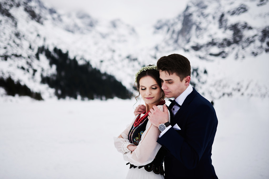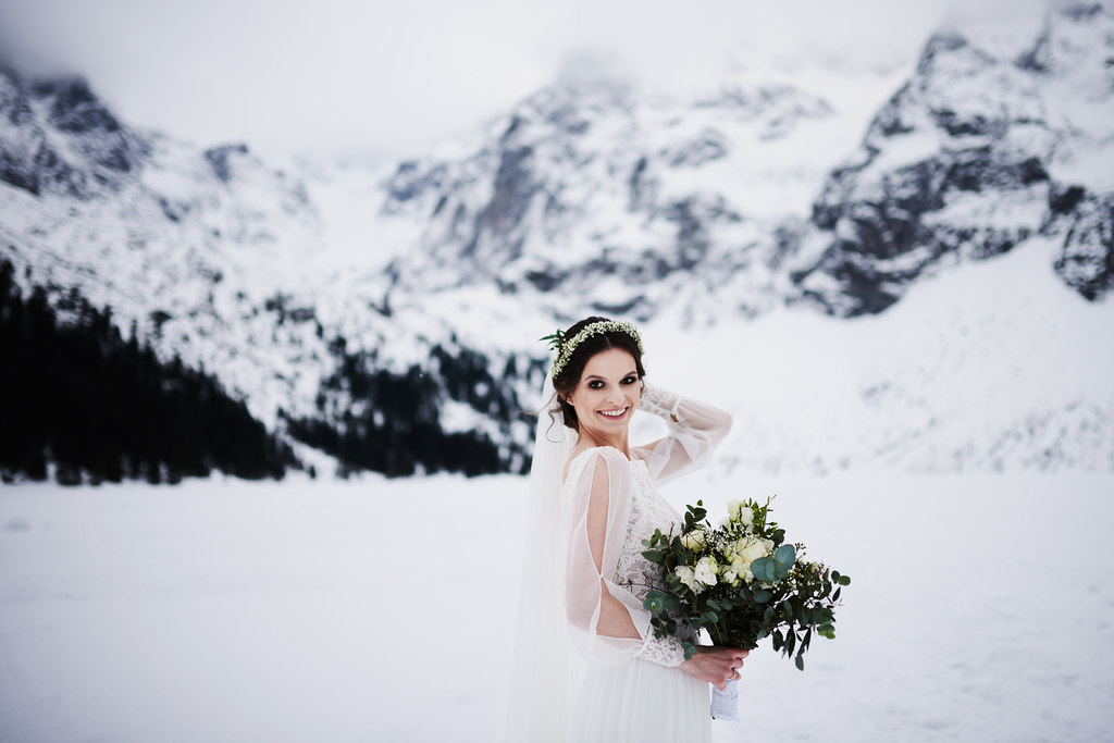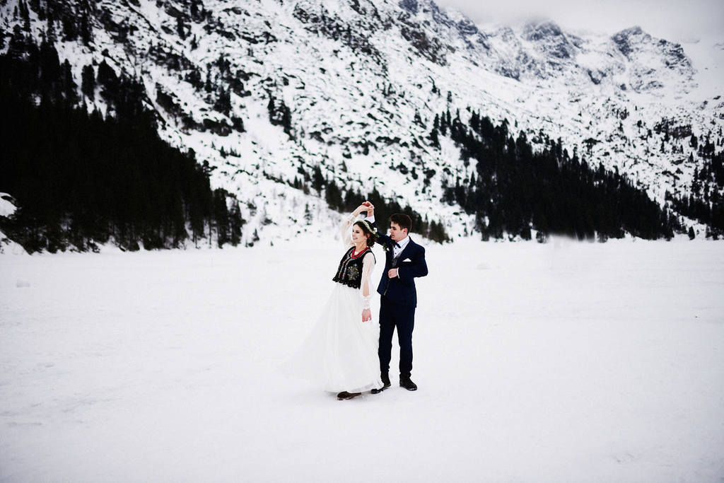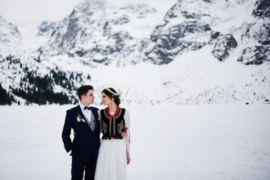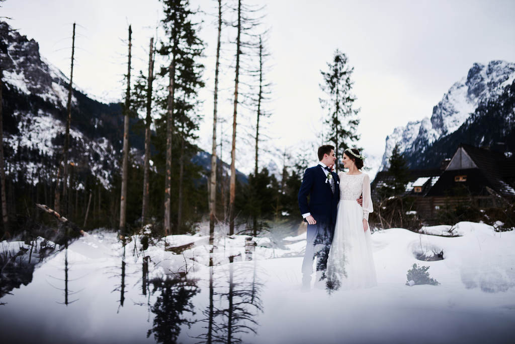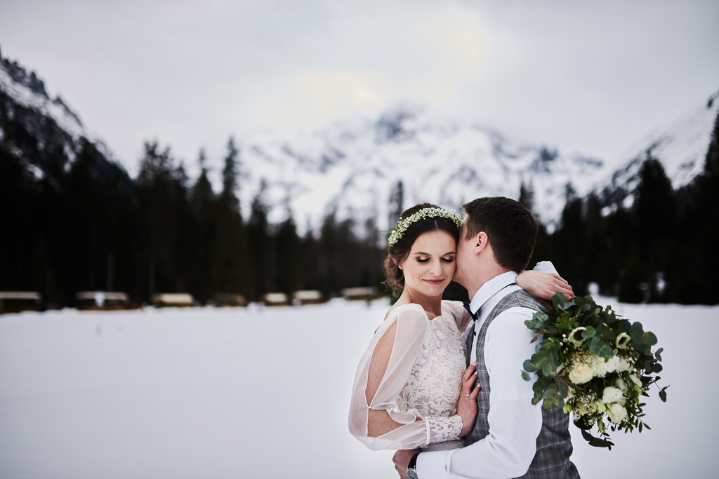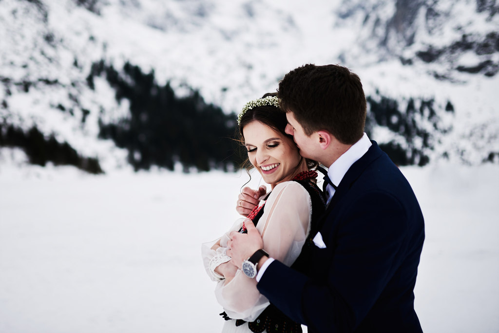 Monika i Tomek to moja kolejna para, która zdecydowała się na sesję w górach. Pierwsze miejsce jakie mi przyszło do głowy na zrealizowanie tej sesji to – Kasprowy Wierch. Niestety, pogoda tego dnia nie rozpieszczała, a kamery na Kasprowym zdecydowanie odradzały wizyty na samej górze. Dlatego zdecydowaliśmy się, że wybierzemy się na Rusinową Polanę– spokojne miejsce, łatwa i niedługa trasa, idealne miejsce na zimową sesję w górach. Jak się okazało.. sesję zrealizowaliśmy nad Morskim Okiem. Jak do tego doszło? Ja wiem – nasza orientacja w terenie sprawiła, że wybraliśmy nie ten szlak, który powinniśmy. Mimo wszystko daliśmy radę.